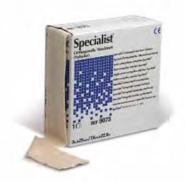 - Specialist Orthopaedic Cotton Stockinette. 4" x 25 yds. Stockinette consists of a high-grade absorbent cotton that is an ideal undercast layer. It stretches to three times its width to conform to complex anatomies. It is contained in an easy-to-use dispensing box for easy storage and handling.