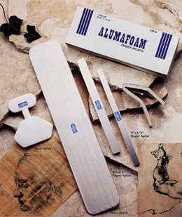 - Alumafoam Finger Splint. 1"W x 18" L. Lightweight, sturdy foam-laminated aluminum splints which can be formed to properly immobilize any finger injury. The high density foam cushions, protects and adjusts as swelling subsides. They are X-ray penetrable and can be cut to therapeutically correct size. Form-fitting to individual; cuts with ordinary scissors and immobilizes and supports.