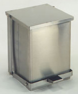 - Stainless Steel Step-On Can. Capacity: 16 quart (4 gallon). Feature unitized contruction, full-width hinges for long life, heavy-duty foot pedal and linkage system, self-closing lid and bag-security mechanism. Plastic protective molding hems bottom of epoxy polyester cans. "Bio-Hazard" and "Infectious Waste" adhesive-backed identifying labels included FREE. 13"H x 11.75"W x 13"D.