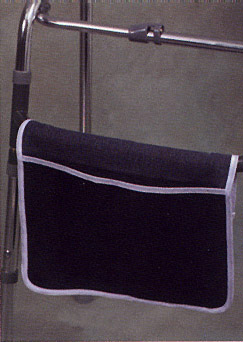 Universal walker pouch. Blue denim, 9 1/2" x 13". Multiple storage compartments. Completely washable. Attaches to all walkers with velcro.