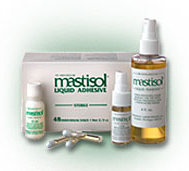 - Mastisol Liquid Adhesive, 15 ml bottle. Mastisol is a clear, non-irritating, and non-water-soluble liquid adhesive that secures the most difficult dressings for an extended period of time. It is 7 to 10 times stickier than Compound Tincture of Benzoin.