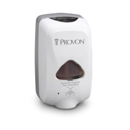 - Provon TFX Touch Free Dispenser. Color: Gray. Touch-free, trouble free dispensing system. Automatically dispenses the perfect amount of foam or gel needed for hand sanitizing in one shot. Nothing for the user to touch. Holds a large, 1200 mL refill. Dispenser features a skylight with an extra-large sight window that makes it easy to see when it's time to reload.