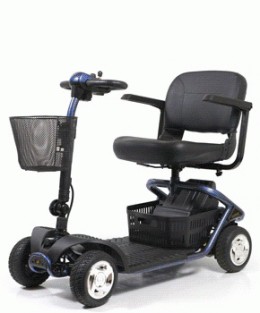 The four-wheel LiteRider™ scooter from Golden features better range, a Delta Tiller standard, more attractive styling and more vibrant colors. A modern tubular frame design supports its 300 lb. weight capacity, and its completely wireless disassembly makes transporting a breeze. The LiteRider GL-140’s 9-inch, black low-profile tires are mounted on high-strength steel rims with shiny hubcaps. Its plush, deep-black vinyl stadium style seat comes with adjustable armrests and a full 360-degree swivel mechanism for getting on and off the scooter easily. You will also appreciate our two storage baskets, one on the tiller and one under the seat, which also includes dual bottle holders (these standard features are unique to Golden). A true beauty, the LiteRider scooter is available in gorgeous, deep shades of red and blue.
