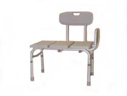 - Transfer benches allow the user to sit down on the edge of the bench, swing their legs over into the tub, and then slide across the seat of the bench into the tub. Two legs of the transfer bench go into the tub while the other end of the bench remains outside of the tub. Economy Non-Padded Transfer Bench. Textured, molded backrest and seating surface offer a non-slip surface with holes for water drainage. Lightweight, anodized aluminum frame is height adjustable in 1/2" increments. Backrest adjusts for right or left facing tubs. Side arm and seat handle provide extra stability and leverage when transferring. Weight capacity 300 lbs.