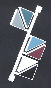 • Exam Room Signal Flag, 6 Flags - Teal, Gray, Blue, Berry, White, and Black. The position and color of these signal flags can be used as a coding system that designates the status of operatory and exam rooms. (Occupied, ready for clean-up, patient ready for transport, X-rays, etc.) Easy to use. Simply move a flag upon entering or leaving a room and the entire staff knows the status of the room. The wide color selection allows for numerous color coding options. Each department can set up their own color coding system. Signals mount easily to walls and doors with the hardware included. The flags have a professional and modern design with the use of primary and contemporary colors. Flags are triangular shaped and conform to both ADA and ANSI standards. Flags are made of injection molded plastic with mar-resistant colored laminate inserts. Signal flags extend 3" (76mm) from the wall.