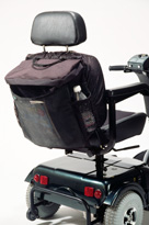 • Scooter Power Chair Pack: Spacious pack has large privacy compartments to keep personal items handy. Features a carrying handle for use as a portable tote. Mesh sleeve easily slips over the back of seat for a comfortable and secure fit. Includes headrest grommets. Made of nylon. Available in black. 16" x 14".