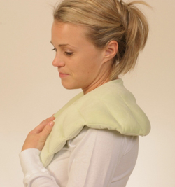 - Herbal Fan Shoulder Wrap, Colors vary. Herbal Concepts has developed a blend of 12 herbs combined in the correct proportions with a blend of high quality flax and grains to provide the maximum benefits for the widest variety of common ailments, such as arthritis, stress relief, flu symptoms, muscle cramps and many others. A true aromatherapy blend, formulated by a naturopathic physician that really works. Herbal concepts...high quality aromatherapy heat products at an affordable price. This product is specifically designed to the contour of the neck and shoulders and stays in place while walking, standing or sitting. Directions: Heat Therapy: Warm in microwave for 1-2 minutes, depending on desired warmth. Increase in 30 second increments as needed. (Check temperature to ensure that warmth is ideal before use.) Place in oven-safe dish, warm in oven 15-20 minutes at 350 degrees. Light misting of the wrap will offer soothing moist heat. Do not overheat - will cause burns (for external use only). Heat lasts for approximately 45 minutes. Cold Therapy: Place shoulder wrap in a ziplock plastic bag in the freezer for 2 hours. Pack will stay cold for up to 45 minutes. Cleaning: Wipe with damp cloth. Storage: Place in a dry and cool place. Storing shoulder wrap in a ziplock bag will increase its longevity. Ingredients: All natural quality ingredients - Lavender, Valerian root, white willow, chamomile, rosemary, peppermint, spearmint, hops, yellow dock, lemon grass,cinnamon, yarrow, premium flax seeds, and other natural materials.