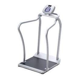 - ProPlus Clinical Stand-On Scale. 1000 lb capacity. 180" swivel head for side read. Motion-sensing weighing technology. Customizable 1" backlit LCD display. Displays fractions, lb/oz, decimals in standard/metric. User-friendly menu screen. Clock with date and time. Keypad entry, BMI, manual tare, zero, auto-off, auto-hold, reweigh, hold/release. Industrial strength wrap-around handrails. USB and serial ports (2) for computer interface with 270 patient memory. Updateable firmware. 6 D-cell batteries (6 month battery life) and 120V AC adapter. Heavy-duty wheels. 1 year limited warranty.