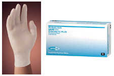 - Safeskin Synthetic Plus Vinyl Exam Gloves have a preferred fit and feel compared to clear vinyl gloves. The white color provides a visual cue that the gloves are made from synthetic materials. Powder and Natural Rubber Latex Free reduces the potential for irritant contact dermatitis and Type I allergic reactions to natural rubber latex proteins. Features: Powder-free, Non-sterile, Smooth Finish, Ambidextrous, Beaded Cuff, Single Use Only, Polyvinyl Chloride. Size: Medium.