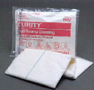 - Curity multi-trauma dressing. 10"x30", sterile packaged 1 per bag. Specialized emergency room put-up. Soft, nonwoven facing with highly absorbent fillings. Superior padding and protection for major wounds. LATEX-FREE