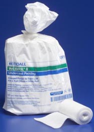 • Webril II undercast padding, 2" nonsterile bulk. Crimped finish for extra loft and conformability. Constructed of 100% purified cotton fibers for soft and natural cushioning. Ideal for use the synthetic and plaster casting material. Retains consistency wet & dry. Conforms to all body contours. Combination of mild stretch and cohesiveness, holds padding in place without shifting or bunching. Available in a sterile blister pouch for postoperative casting applications.