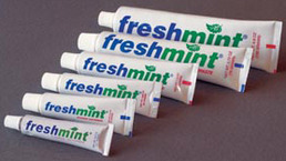 • Freshmint Toothpaste with fluoride to help combat cavities and does not contain animal products. 0.85 oz. (laminated tube). 144/bx. 5bx/cs.