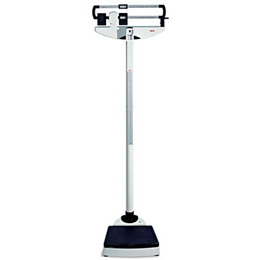 - Mechanical Column Scale with Integrated Measuring Rod. This mechanical weighing station saves time and unnecessary effort when weighing and measuring. Body height and weight are measured precisely in one go. A large non-slip platform has cast-iron base and lever system giving it stability and sturdiness. This station has weight capacity of 400lbs or 160kg (graduation: 1/4 lb/100g). Telescopic measuring rod ranges from 24-78" or 60-200cm (graduation: 1/8"/1mm). Station is complete with transport castors for mobility and flexibility.