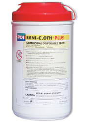 - Sani-Cloth Plus, Low Alcohol 14.85%, For disinfecting non-porous hard surfaces. For use in hospitals and other critical care areas where control of the hazards of cross-contamination is of prime importance Use on surfaces and equipment such as stainless steel, formica, glass carts, baskets, counters, cabinets and other hard nonporous surfaces Ready to use, requires no mixing or measuring. Eliminates the hazards of airborne sprays Unique deep well lid provides adequate space to store and access the next wipe. Convenient; unique canister design provides the freedom of one-hand dispensing EPA approved product Low Alcohol (14.85%) Bactericidal, tubercolocidal and virucidal. Wipe Size: 8" x 14" and 65/TU 6TU/CS.