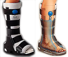 - Equalizer Air Walker, Blue, Medium. Indications For Use: Soft Tissue Injuries (grade 2 and 3 sprains), Stable Fractures, Post-Operative Use. Contoured Sole / Shock Absorption. The low profile contoured sole design ensures anatomical conformity and results in a comfortable and natural gait. The patented energy absorption / energy return feature will absorb a significant portion of the forces that result from heel strike. The benefit is reduced pain and increased comfort during ambulation. Patented pneumatic system increases stability while decreasing pain and swelling. Air is easily adjusted to achieve desired compression and custom fit. Accommodates the swelling patterns that occur throughout the rehabilitation process. Hot/Cold therapy gel available. Colors available: Grey, Black, Blue. Small fits shoe sizes Men's up to 8 and Women's up to 9. Medium fits shoe sizes Men's 8-1/2 to 10-1/2 and Women's 9-1/2 to 11-1/2. Large fits shoe sizes Men's 11-13 and Women's 12 and up.