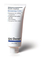 • UniDerm Moisturizing Cream. 3 oz. tube. 24/cs. UniDerm's emollient conditions and moisturizes dry, scaling and cracking skin. Water-based. Quickly vanishes into the skin. Non-irritating, non-sensitizing, non-toxic, pH balanced. Non-greasy.