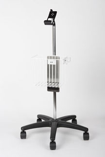 Handheld Doppler Stand. A sturdy 5 caster stand for all handheld Dopplers with convenient storage basket.
