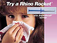 - The compressed foam is in a plastic syringe to protect it from moisture and to aid in insertion. When in place and in contact with moisture, the material swells to 6 times its compressed diameter. The X-large Rhino Rocket and Super Pak are designed for posterior bleeds. Unique applicator minimizes blood containment concerns. Used in the control and management of epistaxis of any type including bleeding after nasal and sinus surgery. The Rhino Rocket is a compressed medical grade sponge that is designed to give gentle but firm compression to the nasal mucosa.