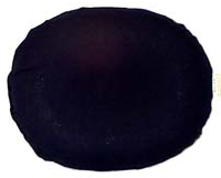 Similiar to a doughnut cushion, but no hole in middle. Indention for tail bone. Approximately 14" across, rounded square shape. Zippered satin cover.
