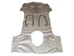 - This sling is available in canvas, nylon, polydura or dacron mesh. This is a comfort commode seat with back, set of 133-S-C chains, and head support for extra patient comfort. This Classic seat sling enhances stability and easy transferring. The durability and seat style has placed the 117 as one of the more popular classic slings.