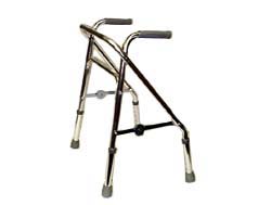 - Toddler folding walker constructed with a lightweight, anodized aluminum with an "A" frame design for greater balance. Easy "pull-up" folding mechanism (bail fold). Fits child heights of 3'4" to 4' and has a height adjustable "grow-with-you" design from 20" - 24". Comfortable vinyl hand graips designed for a child's hand and a noise-free silencer on the footpieces. Folds for easy travel. 175 lb. weight capacity.