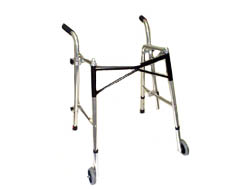 - Strider walkers accommodate virtually any physical requirement with a range of optional attachments. Used primarily by physical therapists for rehab or pediatric patients. Handles adjust without tools to an infinite number of positions to provide stability and posture. There are four different sizes available for patients from pediatric to adult. Extra wide base provides stability, safety and balance. Outfitted with 5" wheels to easily roll over irregular surfaces. Optional accessories include platform attachment, straight or angled handles and one-way locking wheels. The Strider folds easily for transport and storage. Adult model weighs 9 lbs with a weight capacity of 300 lbs. Limited Lifetime Warranty.