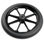 Caster Assembly. Size: 8 x 1". Color: Black. 8-spoke. Black, smooth urethane tire. Precision bearing. 5/16" bearing, 1 1/2" hub. To fit Quickie and most others with 5/16" axles.