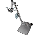 Legrest Assembly, Left. Camlock, Straight Hanger, No Calf Pad. To fit E&J 16 in. wide with Hemi Pin spacing. 2 1/8 in. pin spacing. 6 1/2 in. wide x 6 in. deep aluminum footplate.