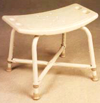 - Heavy Duty Blow Molded Bath Bench. Weight Capacity 500 lbs. Features: Unique two hole handle acts as additional support to the wrist, Patented lower brace clamps allow adjustment while providing strength, Heavy weight blow molded seat, Adjusts in 1" increments, 1/4" Aircraft type rivets (will not loosen). Height of seat: 14 " to 18". Seat Depth: 11 1/2". Seat width: 20 1/4". Leg Depth fully Extended: 17 1/2". Leg width fully extended: 17 3/4". Weight: 5 lbs.