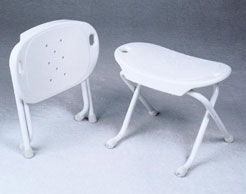 - SpaceSaver Foldable Bath Seat/Bench. Blow molded seat. Folds to 4" flat for easy storage. Thumb holes allow for added wrist support. Cannot fold while in use. Slip-resistant tips. Construction: TUFF COAT 1" aluminum tubing. Seat height: 15-1/2". Seat width: 20". Seat depth: 12-1/4". Leg width: 17-3/4". Leg depth: 16-3/4". Weight: 4-1/2 lbs. Weight capacity: 300 lbs. No assembly required.