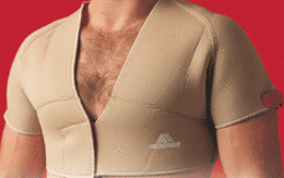 - Thermoskin Double Shoulder Support, Beige, X-Large. Provides protection, heat and support for both shoulders. It is useful as an adjunct in rehabilitation after surgery or to stimulate blood flow in tendonitis cases. Thermoskin Thermal Supports contain the exclusive patented Trioxon lining that has been clinically proven to increase your surface and subcutaneous skin temperature 2 to 3-degrees F. This helps increase the elasticity of muscles, tendons, and ligaments to reduce the risk of injury when under stress. Thermoskin Thermal Supports also increase the blood flow to damaged tissue to help speed up the healing process, while providing light compression to counteract tissue swelling. The spiral structure of the Trioxon lining creates a micro-climate which allows the skin to ventilate by wicking away moisture and does not close the pores of the skin. You can wear Thermoskin for extended periods of time without the discomfort you would have with other products. Competitive products trap the perspiration resulting in discomfort, risk of infection and unpleasant odor.