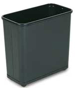 - Rectangular Wastebasket. Raised bottom prevents heat transfer to floor in case of fire. Vinyl rim cushion protects damage to furniture and walls. Nylon glides protects floors and carpeting. Dimensions: 17"W x 8"D x 15"H. Weight: 5-3/4" lbs. each. Almond. Capacity: 30 qt. Meets Federal Specification A-A-182 for Fire Hazard and Flammability Prevention. UL Classified and California State Fire Marshal Listed.