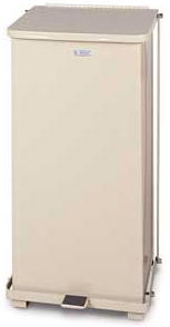 - United Receptacle Self-Extinguishing Step Cans. Constructed of fire-safe steel with a powder coated enamel finish. All models are UL listed and FM approved. Foot pedal permits "hands-free" operation of self-closing lid. Square step cans are complete with Germ-Fighter antimicrobial rigid plastic liners and steel retainer bands to hold poly bags in place. 15" Square x 30"H Step Can, White Baked Enamel Finish, 24 Gallon, Plastic Liner.