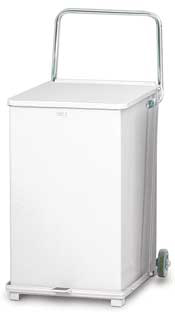 • United Receptacle Self-Extinguishing Step Cans. Constructed of fire-safe steel with a powder coated enamel finish. All models are UL listed and FM approved. Foot pedal permits "hands-free" operation of self-closing lid. Square step cans are complete with Germ-Fighter antimicrobial rigid plastic liners and steel retainer bands to hold poly bags in place. 19" Square x 30"H Step Can, White Baked Enamel Finish, 40 Gallon, Poly Bag Retainer Bands.