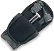 - 2.5v PocketScope Set with Ophthalmoscope, Otoscope, "AA" Batteries, and Soft Case. 2.5v Ophthalmoscope uses halogen illumination for true tissue color and consistent, long lasting illumination. It has 6 aperture selections for general and specialist use, and 48 lenses for better resolution. 2.5v Otoscope also has built in throat illuminator. Features halogen illumination and fiber optics for a cool light with no reflections or obstructions, plus a rectangular viewing lens for instrumentation under magnification. 2.5v PocketScope handle has a smooth rheostat to control light intensity and features a handy pocket clip.