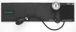 • Welch Allyn DuraShock integrated sphygmomanometer with a traditional two-piece cuff and bladder, adult size. Welch Allyn DuraShock Sphhygmomanometer - the first and only gear-free, shock-resistant aneroid. By creating a gear-free design, we've created a gauge that is shock-resistant, lighter, and much thinner than traditional gauges. Until now, dropped sphygmomanometer required recalibration or replacement. Not the DuraShock; it can fall 30 inches onto a hard surface and still remain accurate. Key componens: DuraShock DS44 Gauge, preprinted dial face, one-piece changeable bumper, medium gray bulb, standard valve, and a 5 year warranty. Standard Adult size.