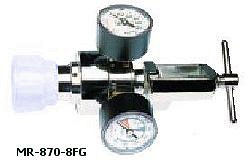 - Single-Stage Oxygen Regulator. Flow Range: 1 - 8 psi. Inlet Connection: CGA-870 Yoke. Chrome-plated brass body with all brass high-pressure chamber. Tested to CGA Standards which include ignition testing. Maximum inlet pressure 3000 psi. Durable neoprene diaphragm. Internal reseating relief valve protects against overpressurization. 2" diameter gauge. UL listed. Sintered filter for additional safety and to extend regulator life. Standard DISS 1240 outlet connection and plastic swivel hose barb. 6-year limited warranty.