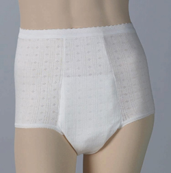 - Dignity Free & Active Absorbent Panty. An elegant and durable panty with the look and feel of regular women's underwear. The center of the garment has mulit-layered extra absorbent padding that is covered by a stay-dry lining to provide dry reliable protection from mild releases of fluid. For additional absorbency a pad may be added. The panty features: scalloped waist and leg elastic, feminine jacquard body fabric, multi-fiber absorbent padding and body fabric 50% cotton 50% polyester. Size: Large. Fits hips 41"-42". To be used with the Dignity Liners.