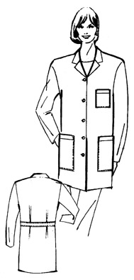 - Mid-Length Lab Coat; Ladies, Size 16 (Bust 40 1/2, Waist 31 1/2, Hips 41 1/2). 35" Length. 65% polyester/35% cotton poplin w/ stain release. A pleated back design allows for ease of movement. Sewn-down back belt maintains a trim appearance.