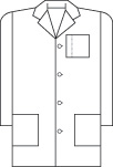 - Men's Short 34" Lab Coat. Size: 54. Color: White. Practical details add up to one great lab coat. Inside pocket and chest pocket with pen divider. Pleated back for extra movement, sewn-down back belt. 65/35 Requisite with Soil Release.
