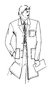 - Pleated-Back Men's Lab Coat, White, Size 44 Long (fits men 6' to 6' 3"). This best-selling lab coat is made for movement with pleated back and sewn-down back belt. Reinforced side slits allow easy access to trousers. Inside pocket is handy for holding valuables. 38" length. 65% polyester/35% cotton fine line twill with stain release.
