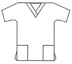 Ladies V-Neck Top with side slits, 27" length, Red in color, Size Large (16/18). 65% Polyester/35% Cotton with soil release.