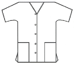 Ladies Snap Front Top, 28" length, Royal Blue in color, Size Large (16/18). Top has V-Neck, five matching snaps, and a beeper pocket. 65% Polyester/35% Cotton with soil release.