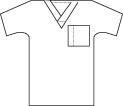 V-Neck Top, 27" length, Galaxy Blue in color, Size Unisex Large (Men's 42/44, Ladies 16/18). Left breast pocket. Poplin, 65% Polyester/35% Cotton with soil release.