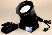 - Intensi-Spot Light with Foot Switch. Designed to provide a concentrated light source. The Intensi-Spot utilizes a 100-watt lamp, shielded by an octagon mask for light concentration. The Intensi-Spot tilts to any angle and includes foot switch operation. The unit comes in a baked enamel finish, with holes in the base for wall mounting, and a 6' line cord with 3 prong plug. Specifications: 9" H x 6"D.