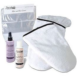 - Therabath Hand ComforKit. Prolong the heat from warm paraffin treatments for longer-lasting relief and softer, smoother skin. Use during paraffin hand and wrist treatments. Two heavyweight, ultraplush terry velour, Thinsulate T-lined mitts provide maximum comfort and warmth. Mitts have easy-to-use Velcro closures and are machine washable. 100 disposable plastic liners make clean-up fast and easy! 4 oz. Sanitizing Spray cleanses skin prior to paraffin application. Also includes 4 oz. Intensive Hydrating Cream.