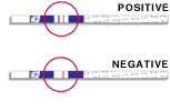 - Osom Pregnancy test urine, easy-to-read, two color results: blue test line, red control line dipstick, sensitive 25 mIU/ml sensitivity, room temperature storage. All you do is dip test stick into the sample up to the sample line for at least 3 seconds. Read urine test results as soon as red control line appears (1-to-2 minutes). A positive sample produces a blue test line and a red control line. A negative sample produces a single red control line which serves as internal quality control. CLIA Waived.